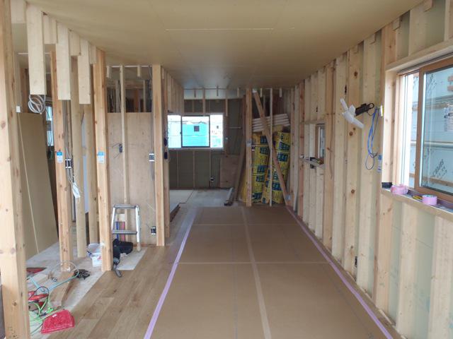 ★今週の予定工事 木工事(床フローリング貼り、軒天下地組み、軒天ボード 貼り、外壁下地材打ち、窓枠取付、壁ボード・下地合板 貼り、他)