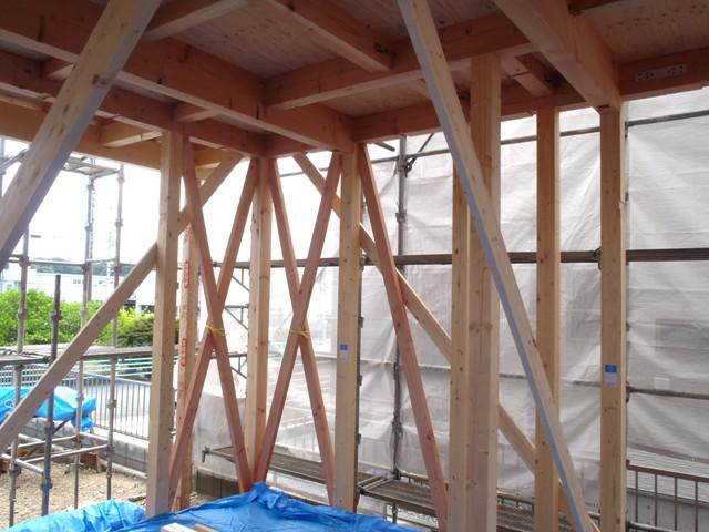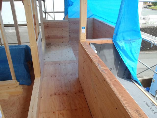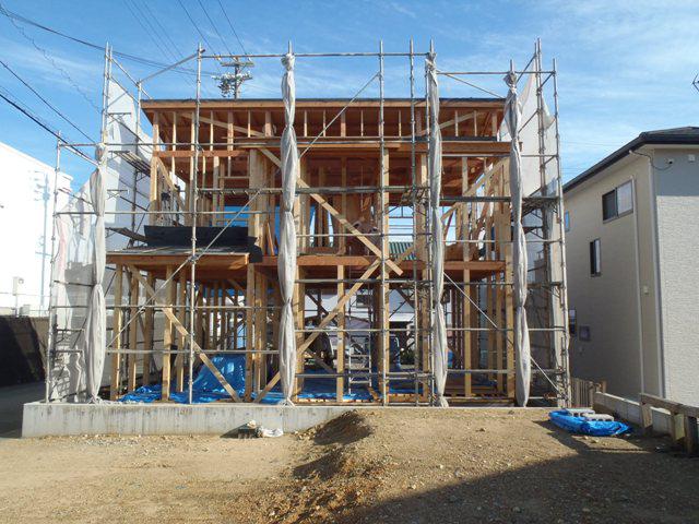 ★先週の工事★ 木工事(筋違・間柱入れ、構造金物取付、ベランダ下地組み 他) 屋根工事(下地板金) ★今週の予定工事★ 木工事(ベランダ防水下地、窓開口造作、他) 屋根工事(屋根材荷揚げ、平板葺き、他)