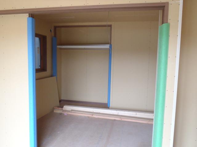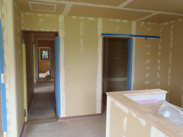 ・内部木工事、納材待ちの幅木材・建具本体を残し一時現場を 離れます。木工事完了しています部屋より内装仕上げ工事へ 入っていきます。外部浄化槽設置し外部汚水排水、雨水・ 給水配管埋設を行います。