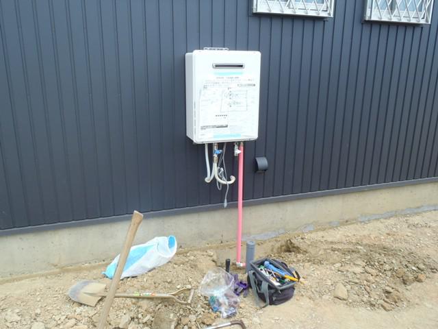 ★先週の工事★ ガス給湯器設置 外部給排水・給湯配管 基礎幅木塗り・タイル工事