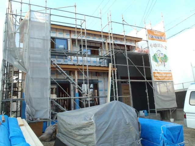 ・内部木工事、壁断熱材入れ、床フローリング貼りへと進んで