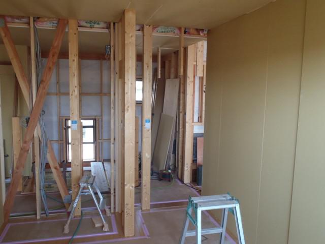 ★先週の工事★ 木工事(2階壁ボード下地合板貼り、ドア開口枠組立取付、他) 外部点検、ベランダ笠木下地 外部足場解体 ★今週の予定工事★ 木工事(2階壁ボード下地合板貼り、ドア開口枠組立取付、他)