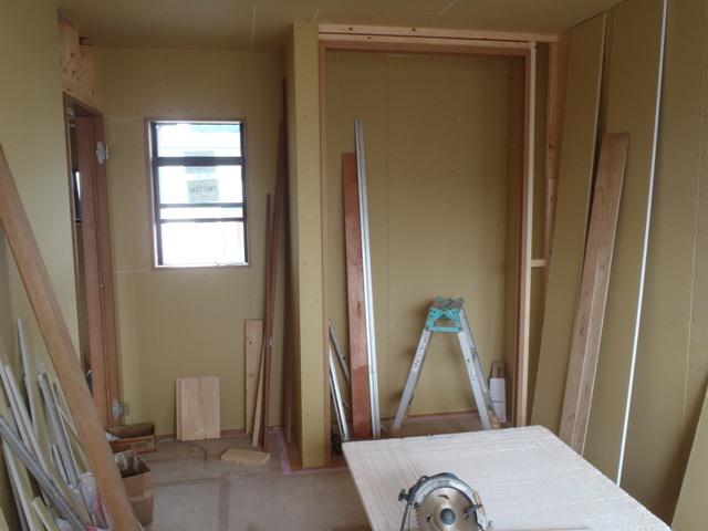 ★先週の工事★ 木工事(ドア開口枠組立取付および取り合い壁ボード納め 固定棚取付、他) ★今週の予定工事★ 木工事(ドア開口枠組立取付および取り合い壁ボード納め 固定棚取付、幅木取付、他) 外部給排水埋設