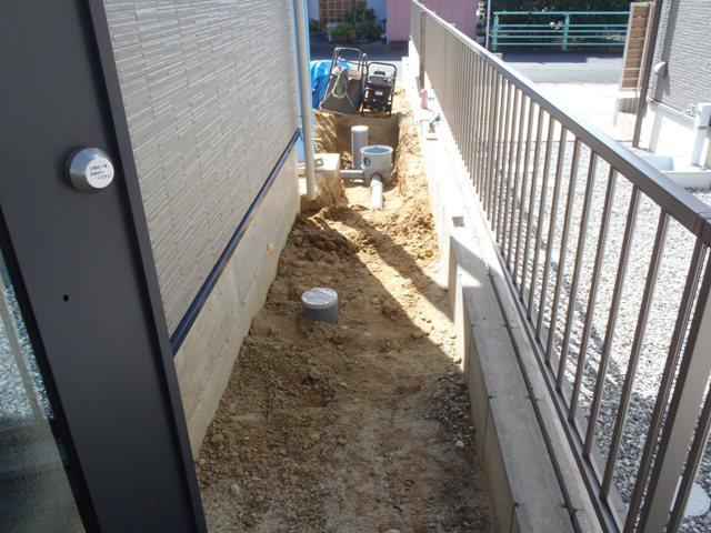・外部工事、給排水管埋設、下水・上水接続を行いました。