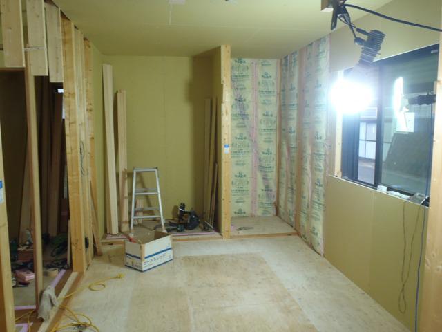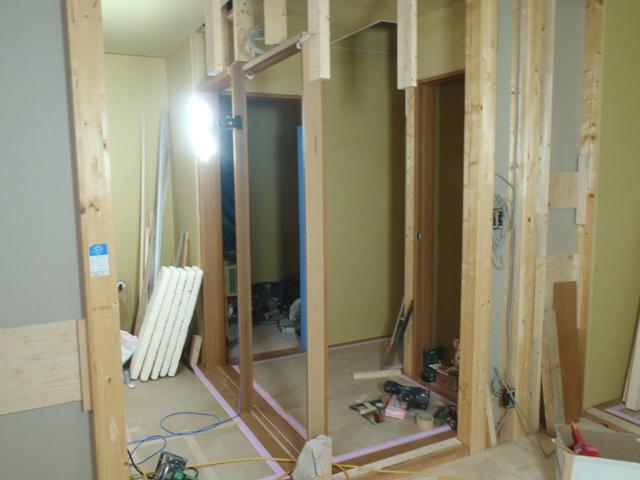内部木工事、階段廻り・廊下等の建具枠・壁ボード納めを行い