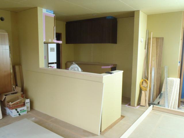 ・22日システムキッチン据え付けを終え養生してあります。