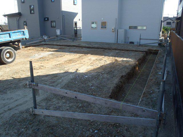 ★先週の工事★ 基礎工事(丁張、掘削、砕石地業、土間シート敷き、他) ★今週の予定工事★ 基礎工事(土間シート敷き、ベース型枠組み、鉄筋加工・ 鉄筋組み、他)