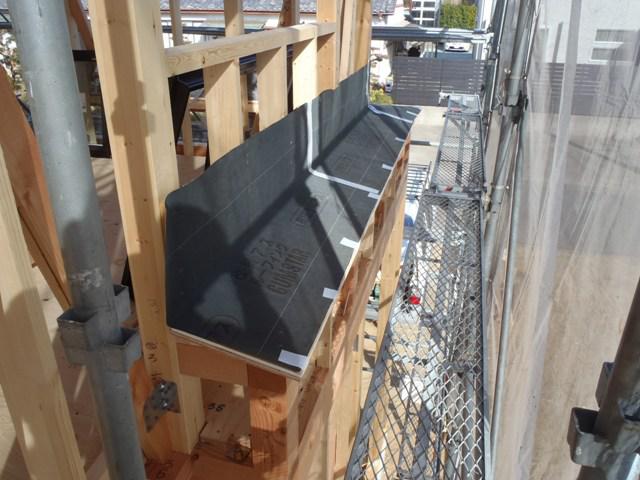 中間構造検査 土台水切り、外壁シート貼り