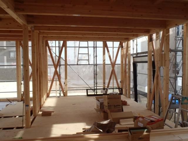 ・木工事、下屋根下地・防水紙葺き、構造金物取付を終え