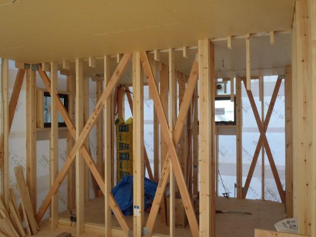 ★先週の工事★ 木工事(1階天井下地組み、天井ボード貼り、外壁下地木材 打ち、他) ユニットバス据付 ★今週の予定工事★ 木工事(1階天井下地組み、天井ボード貼り、外壁下地木材 打ち、軒天下地組み、他)