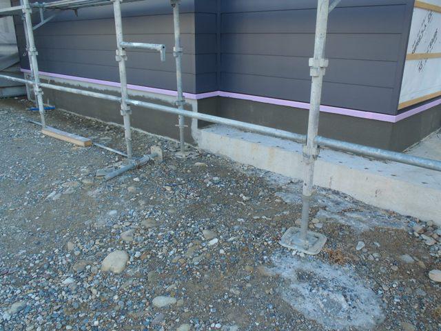 ・外部工事、基礎幅木塗り、TVアンテナ設置を終え、外部点検し 外部足場解体となります。 ・給排水・給湯 埋設、エコキュート配管、勝手口階段造成へと 入ります。 ・内部仕上げ工事 コンセント・スイッチ位置壁ボード開口を 開けクロス工事へ入ります。