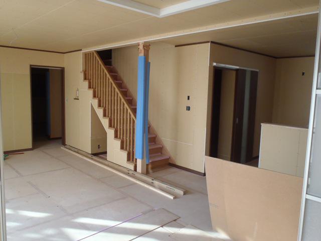 ★先週の工事★ 内部ボード開口 内装仕上げ工事(クロス下地、他) TVアンテナ設置 基礎幅木塗り 外部足場解体 ★今週の予定工事★ 内装仕上げ工事(クロス下地、パテ入れ、クロス貼り、他) 勝手口階段造成 外部給排水埋設
