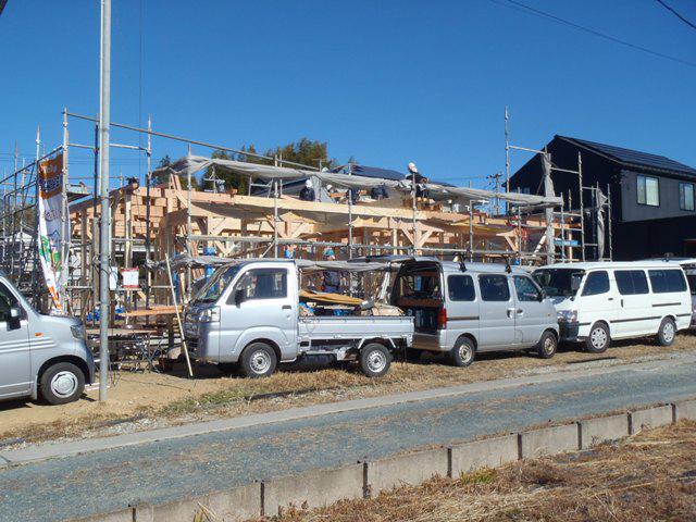 ★先週の工事★ 上棟 屋根下地防水材葺き 木工事(筋違い・間柱入れ 構造金物取付、他) ★今週の予定工事★ 木工事(間柱入れ、構造金物取付、床断熱材入れ、他) 屋根材荷揚げ、屋根材葺き 防腐防蟻処理 中間検査