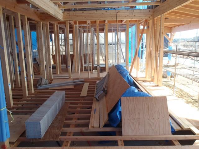 ★先週の工事★ 木工事(間柱入れ、床断熱材入れ、床合板本締め、 窓サッシ開口造作、他) ★今週の予定工事★ 木工事(床合板本締め、窓サッシ開口造作、窓サッシ取付 壁下地打ち、天井下地組み、他) 窓サッシ搬入 内部電気配線