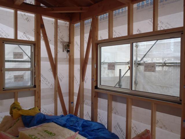 木工事(窓サッシ取付、壁下地打ち、軒天井下地組み、