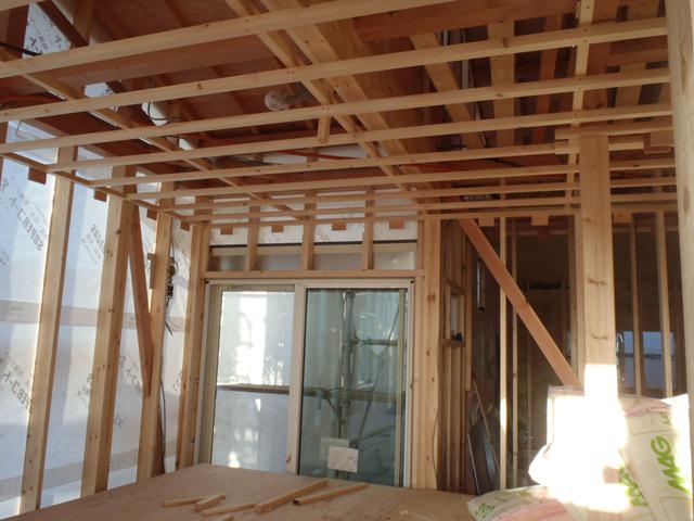 外壁下地材打ち、内部造作、天井下地組み及び天井ボード