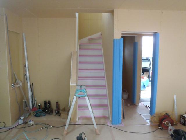 ★先週の工事★ 木工事(固定棚類取付、幅木取付、階段造作、階段廻り 造作、建具吊り込み、可動棚加工、他) ベランダアルミ笠木設置 玄関・ポーチタイル貼り ★今週の予定工事★ 木工事(固定棚取付、幅木取付、建具吊り込み、固定棚 加工、他)