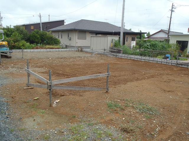 ・基礎工事へ着手しました、基礎高さ基準となる(丁張)を 行い、掘削作業進めています。 ・砕石地業、土間シート敷き、ベース型枠組み、鉄筋加工 鉄筋組みを予定しています。