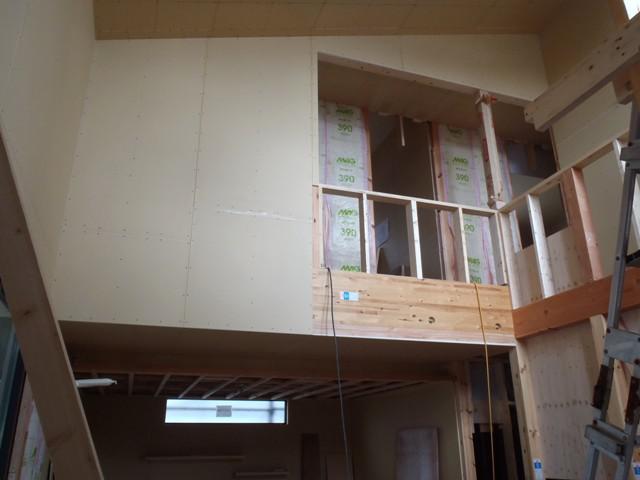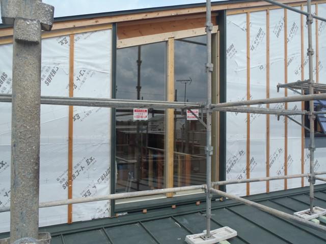 壁下地合板貼り、窓枠取付、他)