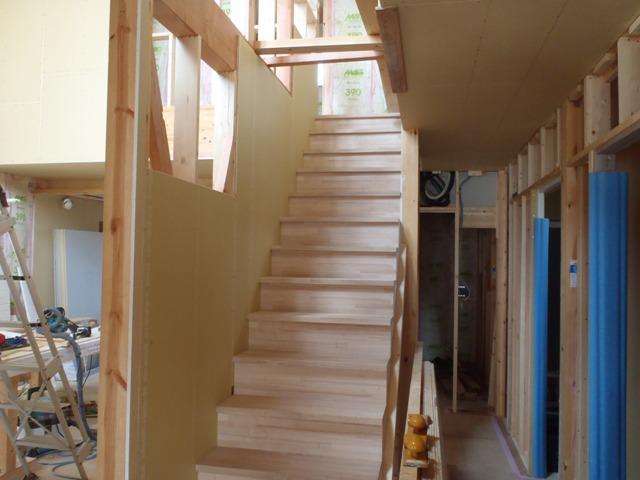 階段造作と内部造作を進めています。外部工事、外壁板金、