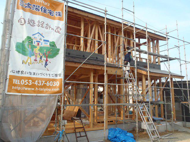 ・上棟おめでとうございます、天候に恵まれ上棟式、餅投げに