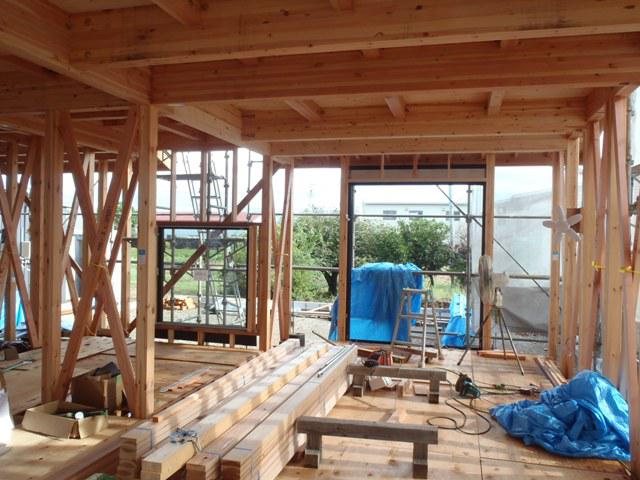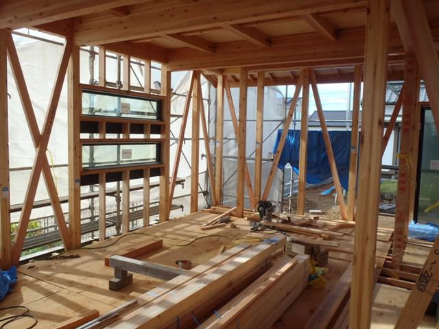 ★先週の工事★ 木工事(筋違い、間柱入れ、構造金物取付、窓サッシ開口 造作、サッシ取付、他) 外部足場、屋根上足場 屋根工事(下屋根GL鋼板葺き、 役物部材取付) ★今週の予定工事★ 木工事(構造金物取付、窓サッシ開口造作、サッシ取付 1階床下地造作、他)