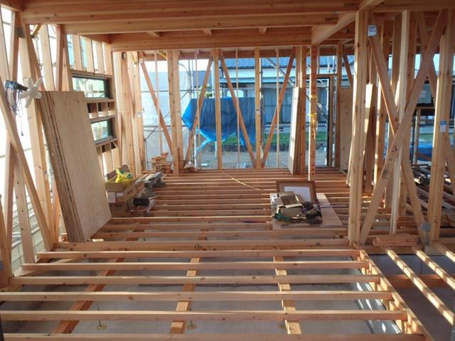 ★先週の工事★ 木工事・構造金物取付、耐震ダンパー取付、1階床下地、他) 防腐防蟻処理 中間検査 ★今週の予定工事★ 木工事(1階床断熱材入れ、2階壁天井下地、外壁下地、他) 外壁下地シート貼り 給排水内部配管