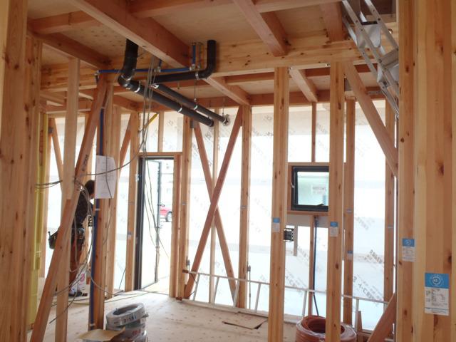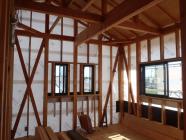 木工事(1階床断熱材入れ、延焼ボード貼り、2階壁天井下地