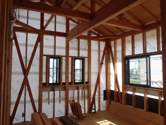 木工事(2階壁天井下地及び天井断熱入れ、外壁下地、他)