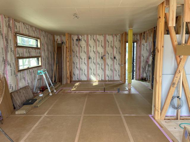 設置時に床貼りします。壁ボード搬入されましたらボード