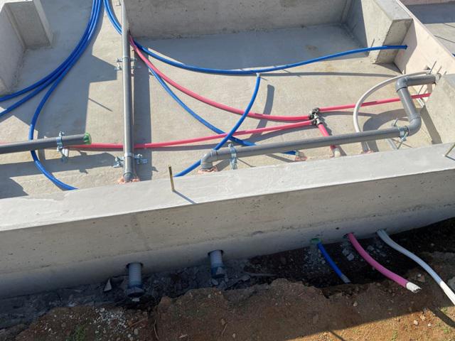 ★先週の工事★ 基礎工事(立上型枠解体、埋め戻し整地、玄関・ ポーチタイル下地コンクリート、他) 外部・内部排水・雨水先行配管 土台・床下地木材搬入 ★今週の予定工事★ 上棟準備、土台据え、床下地組み、1階構造材・下地木材 搬入 外部足場組み