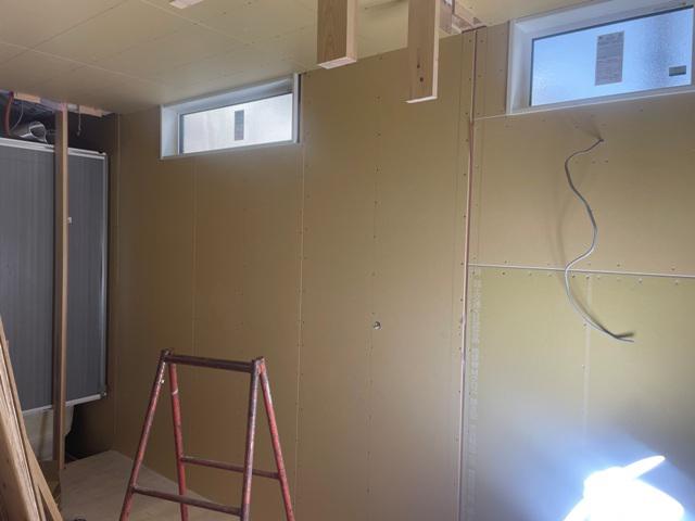 木工事(2階壁ボード貼り、ドア開口枠取付、1階天井下地