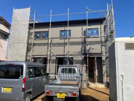 終えました、物干金具の取付、外部点検し外部足場解体と