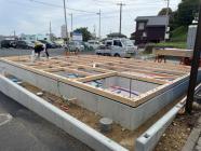 ・床下地組み、上棟準備、柱・梁、下地木材搬入し、外部足場 組みを終え上棟を迎えます、上棟当日は1・2階構造材組み、 小屋組、屋根下地と予定しています、建物高さ、間取り間隔 等の確認を行えます。