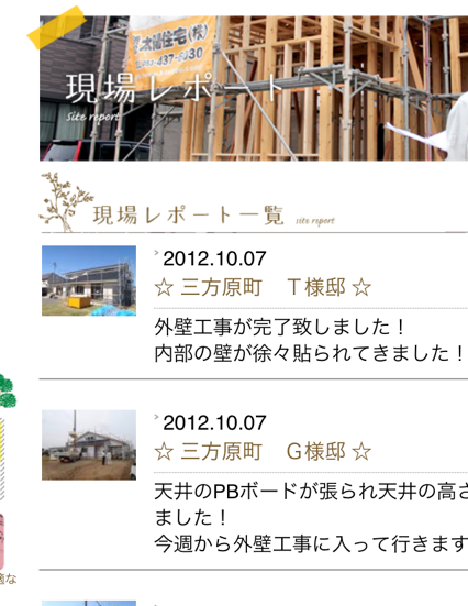 毎週毎週、現場ごとのレポートを公開しております!太陽住宅の家造りがどの様に進められているか毎週更新しております。 TOPページ中あたり緑のバナー“現場リポート”下の一覧を表示をクリック” また、実際に現場を見てみたいとお思いの方はご連絡下さい。