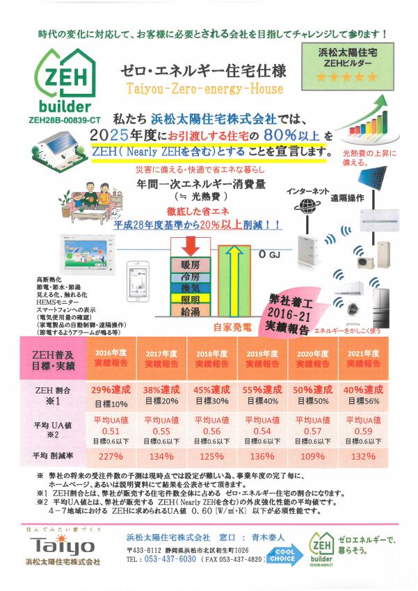 浜松太陽住宅 2021年度ZEHビルダーにおける実績報告と目標資料を公表させて頂きました。