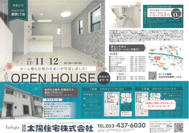 浜松市中区葵西にてオープンハウスを開催致します。