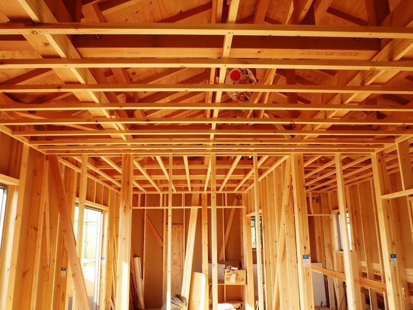 12/12(月)JIO/検査機構の中間検査に合格しました。 ◇ 今週の予定 ◇ 12/19(月) *木工事 <外壁下地打ち・天井ボード張り・天井断熱材入れ・他> *内部電気配線工事 12/21(水) *ユニットバス搬入/据付工事