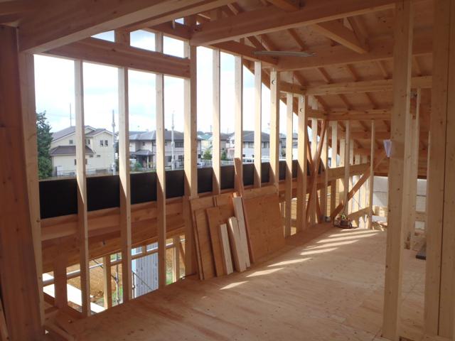 ☆先週の工事☆ 木工事(筋交い、間柱、構造金物取付) 屋根カラーベスト葺き ☆今週の工事予定☆ 木工事(間柱、構造金物取付、一階床下地) 屋根工事 防腐防虫処理