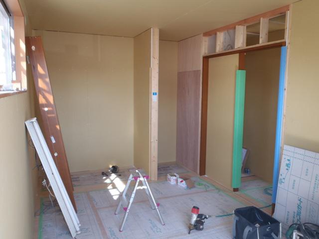 ☆先週の工事☆ 木工事(床仕上げ材貼り、壁ボード貼り、窓枠取付、他) ☆今週の工事☆ 木工事(床仕上げ材貼り、壁ボード貼り、窓枠取付、他)