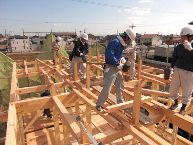 ☆先週の工事☆ 上棟準備、構造材搬入 上棟 木工事(筋カイ・間柱入れ 構造金物取付、他) 外部足場組み 屋根工事(ルーフィング張り) ☆今週の予定工事☆ 木工事(筋カイ・間柱入れ、構造金物取付、サッシ開口下地、 サッシ取付、他)