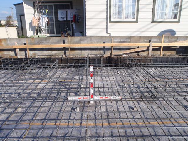 基礎工事、鉄筋を組み終えJIOの配筋検査を受け合格となりました!型枠を作りコンクリート打ちを行い、型ばらしを行いました。