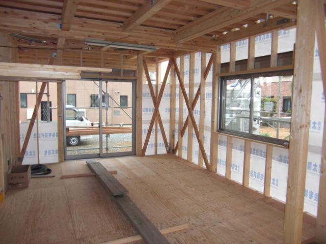 ☆先週の工事☆ 木工事(床下地組み、床下断熱材入れ、天井下地組み、他) 中間検査・躯体検査 外壁工事(透湿防水シート貼り) ☆今週の予定工事☆ 木工事(天井断熱材入れ、天井ボード貼り、外部胴縁打ち、他) 外装下地検査