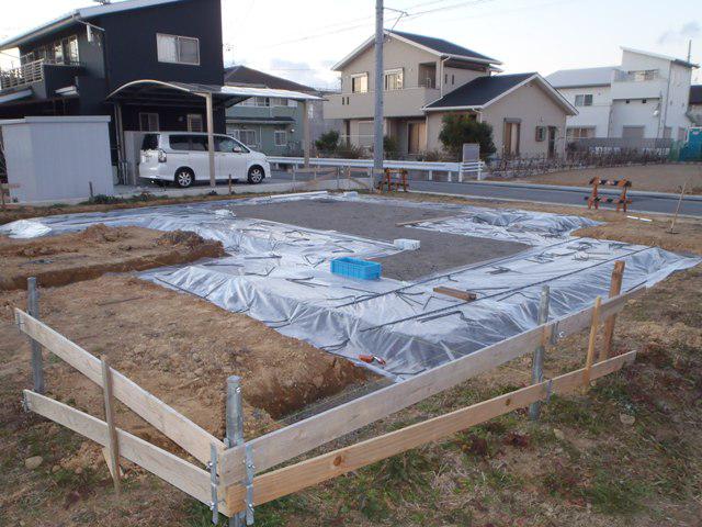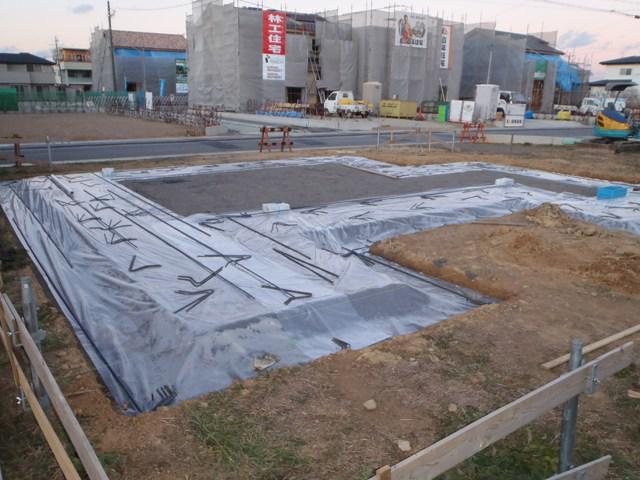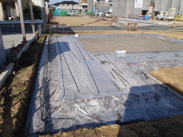 基礎工事で土間シートが貼られています(これは基礎下から湿気を防ぐ役割があります)今週の中旬から鉄筋組みに入って行きます!
