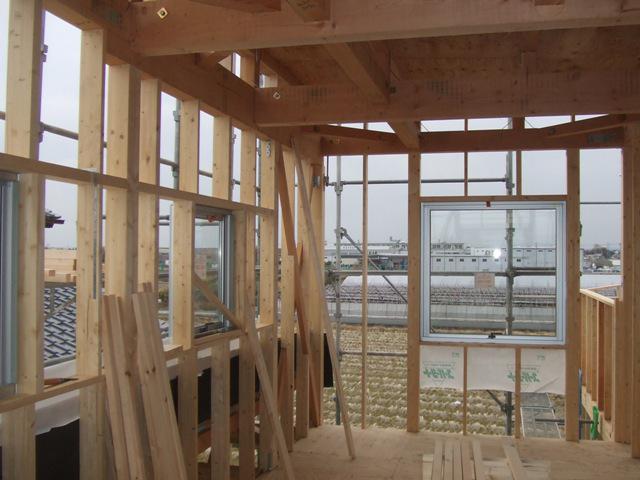 ☆先週の工事☆ 木工事(サッシ開口、サッシ取付、天井下地組み、他) JIO保障機構、中間検査 ☆今週の予定工事☆ 木工事(サッシ開口、サッシ取付、外壁下地材打ち、天井下地 組み、他) 外壁シートト貼り