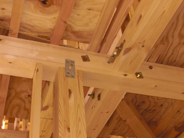 屋根工事が終了いたしました!葺きあがりがとっても綺麗です!大工工事は耐震金物の取付を進めております!