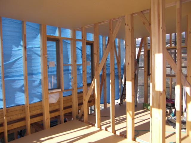 ☆先週の工事☆ 木工事(2階天井下地組み、天井ボード貼り、床ボード貼り、 他) 中間検査 ☆今週の予定工事☆ 木工事(1階床下地組み、天井下地組み、天井ボード貼り、 他) 外壁工事(透湿防水シート貼り)