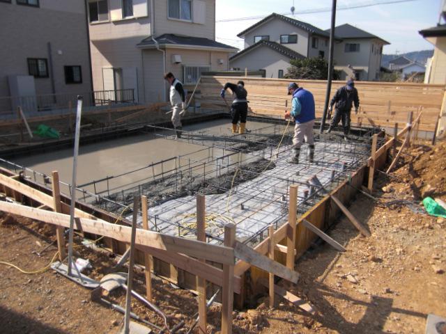 ☆先週の工事☆ 基礎工事(鉄筋組み、ベースコンクリート打ち、立ち上り型枠 組み、立上りコンクリート打ち、他) 鉄筋検査 ☆今週の予定工事☆ 基礎工事(型枠解体、土間コンクリート打ち、埋め戻し・整地 他)