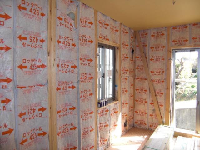 今週、天候により外部の工事がズレ込みましたがなんとか浄化槽や外部胴縁の施工が行われました。内部には断熱材が綺麗に敷き詰められております!