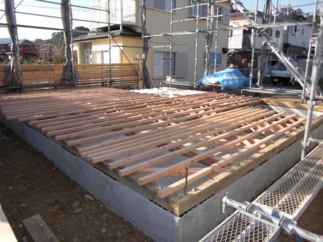 外部足場、土台が据え付けられまして上棟準備が進められております!いよいよ上棟です!